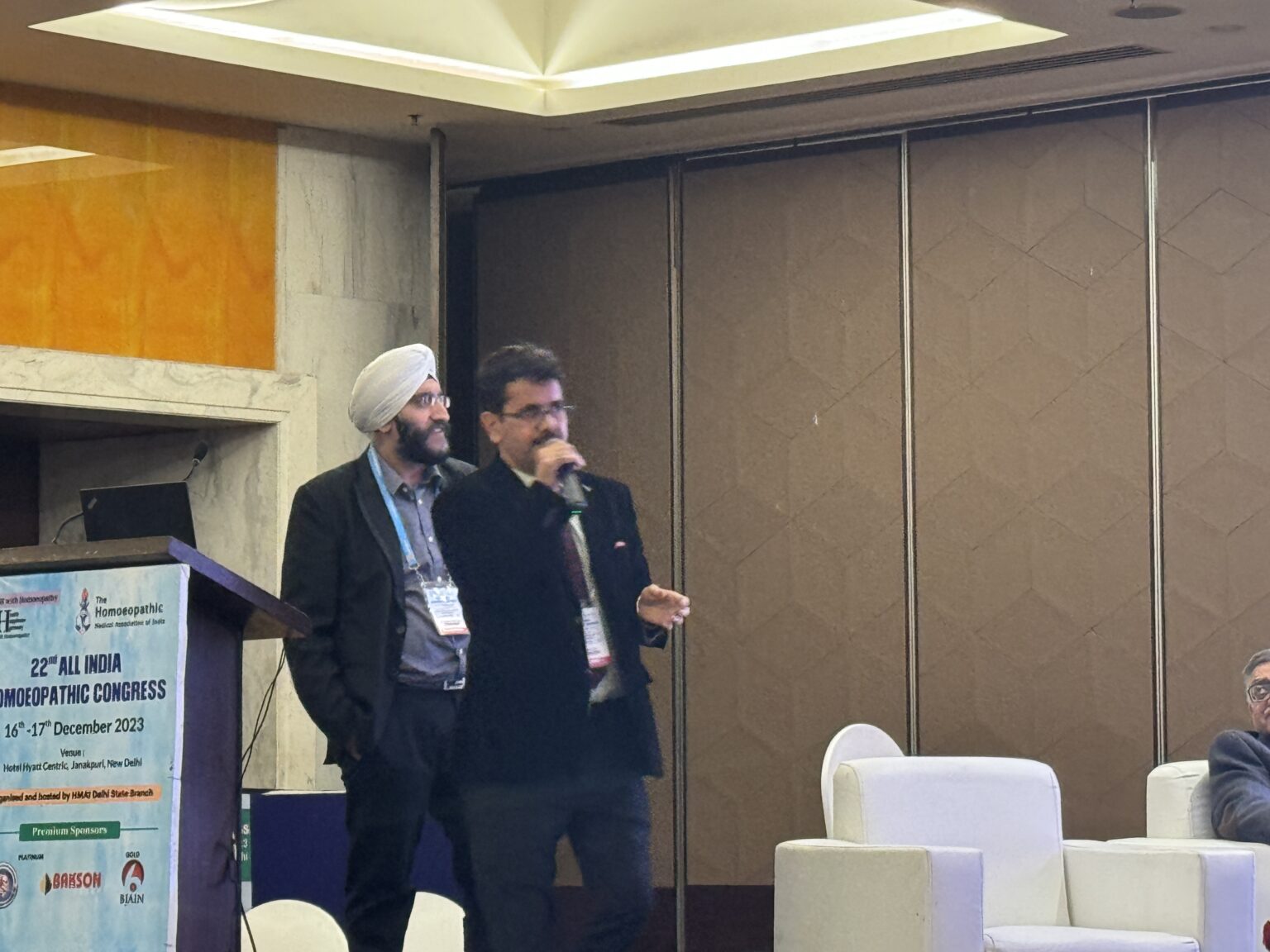 Dr Ravi presented his work on medicine transmission through hair in cases of CSF at 22ns All India Homoeopathic Congress Hayat Centric New Delhi Dec 2023. The delegates sitting in front of Dr Ravi while presentation included Dr S.M. Singh, Dr Rajesh Shah, Dr Subhash Singh, Dr. Mukhtinder Singh, Dr Navneet Bidani, Dr Sanjeev Kumar Singh, Dr Amit Sahni and many more. The homoeopathic Drs got amazed with the excellent results observed in the cases of CSF Rhinorrhea with Homeopathy. The session moderator Dr Pasrich appreciated the scientific presentation of Dr Ravi
