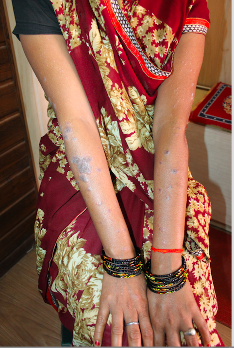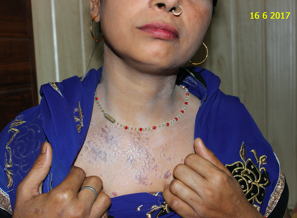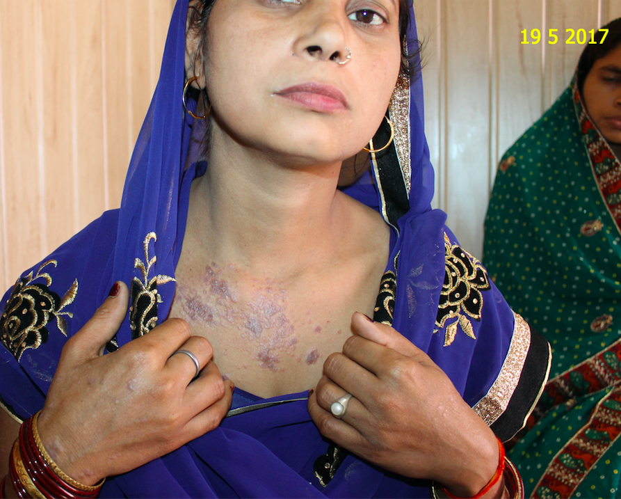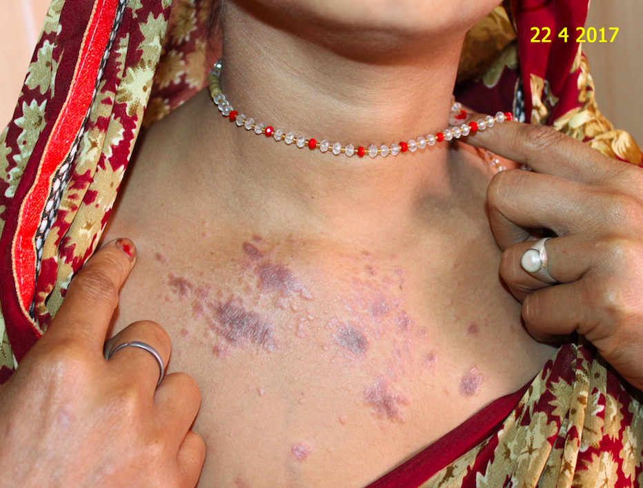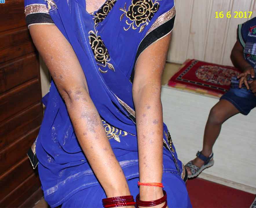 This is the story of Kusum Tiwari, a housewife, from Baradolia, a small place in District Balrampur. She was suffering from a disease called Lichen Planus for last 2 years. Lichen planus is an inflammatory skin condition, characterized by an itchy, non-infectious rash. It consists of small, many-sided, flat-topped, pink or purple bumps. Lichen planus is a non-infectious, inflammatory skin disorder.