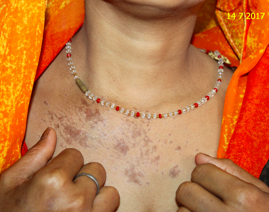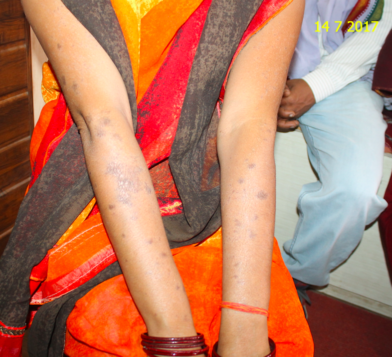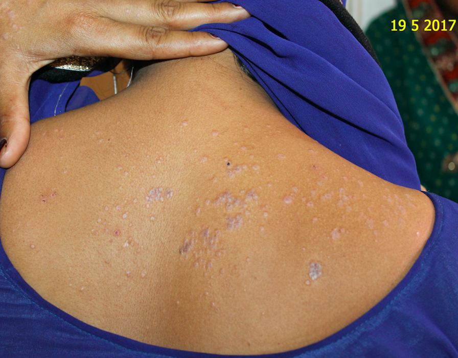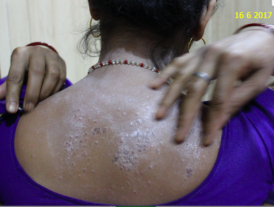 The patient came on 15-09-2017 for her sixth follow-up. By this time many of her spots were gone, only a few spots were left with a dull appearance. No itching or burning was left.