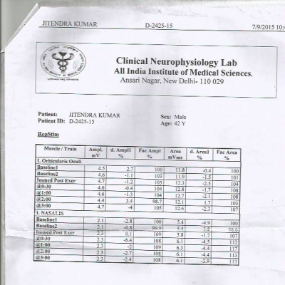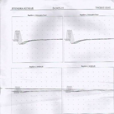 When he came for follow up on 5th July 2017: He was happy with the treatment process and there was 100% improvement in blepharospasm, he reported that continuous blinking has stopped completely. Only for sometimes he feels his eyelid little weighted but overall he is cured.