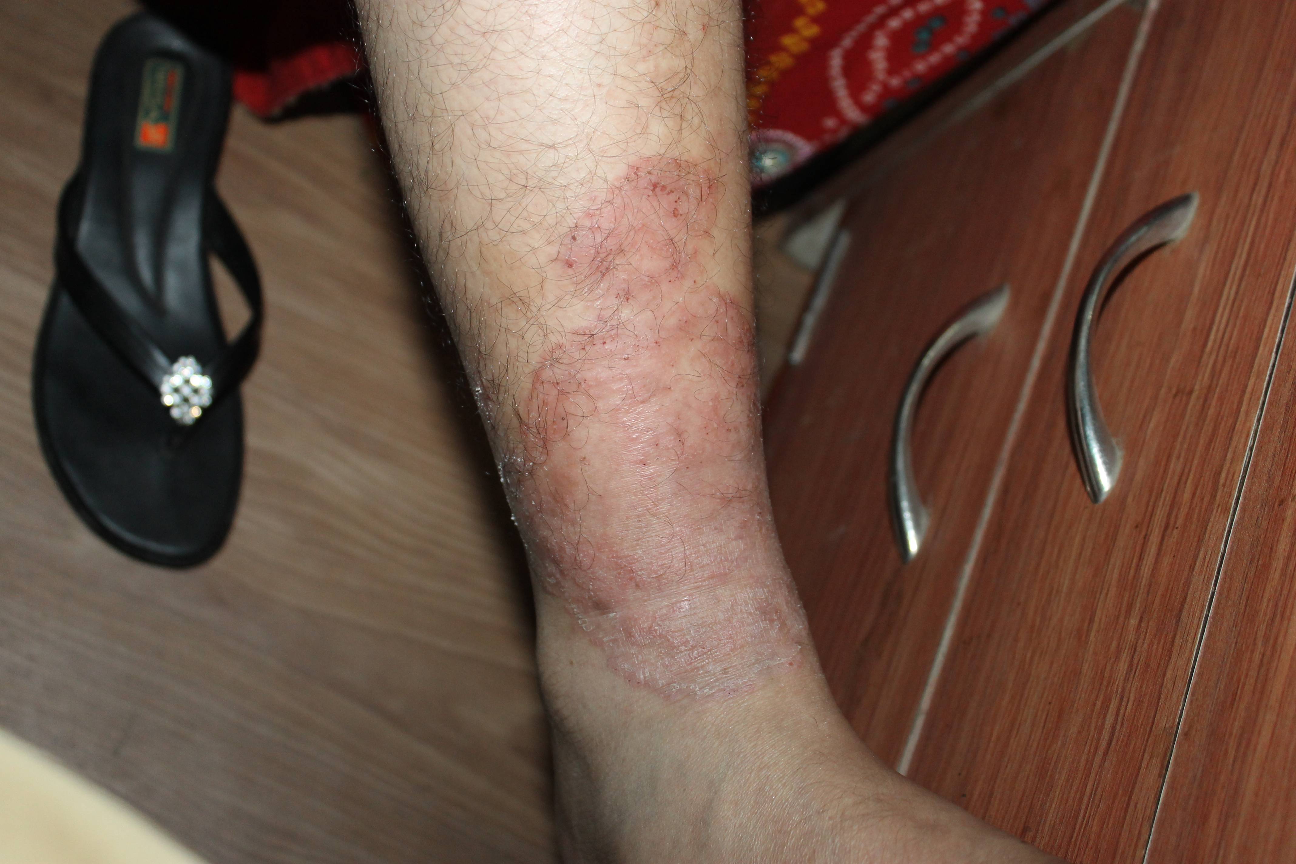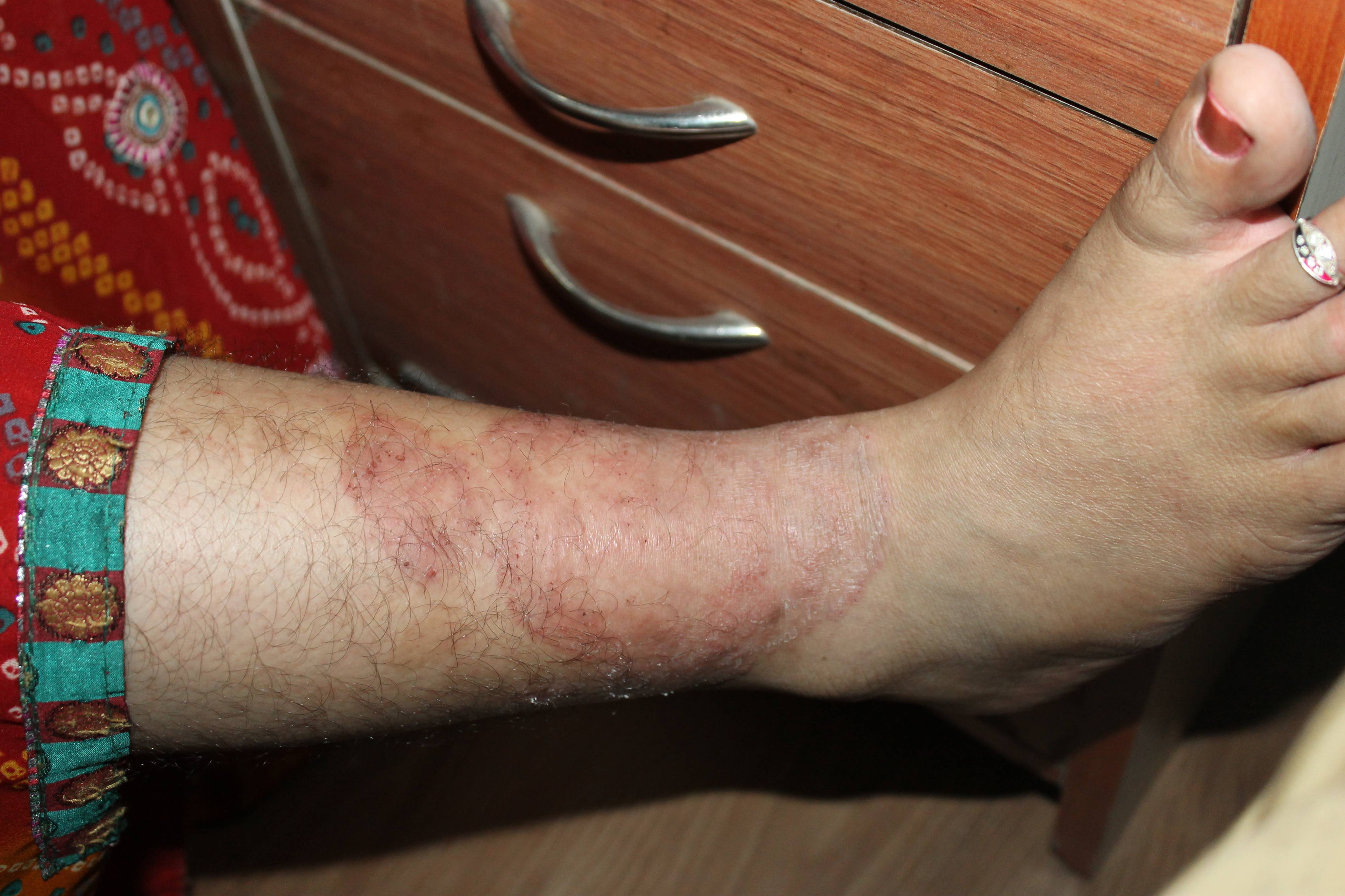 Further improvement noticed. Redness of leg gone completely, no more itching, she has been advised to stop the treatment after one month. And after one month.