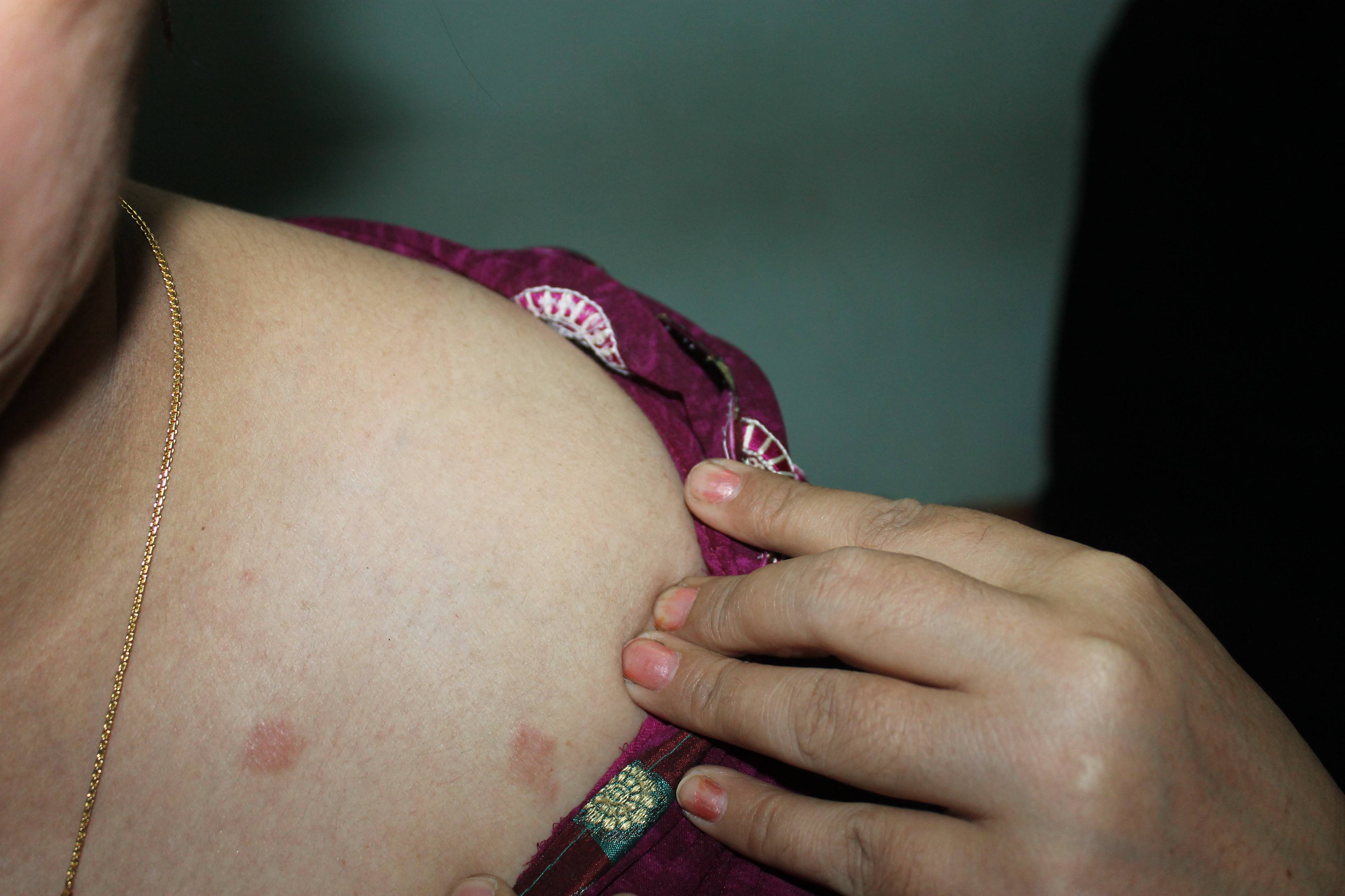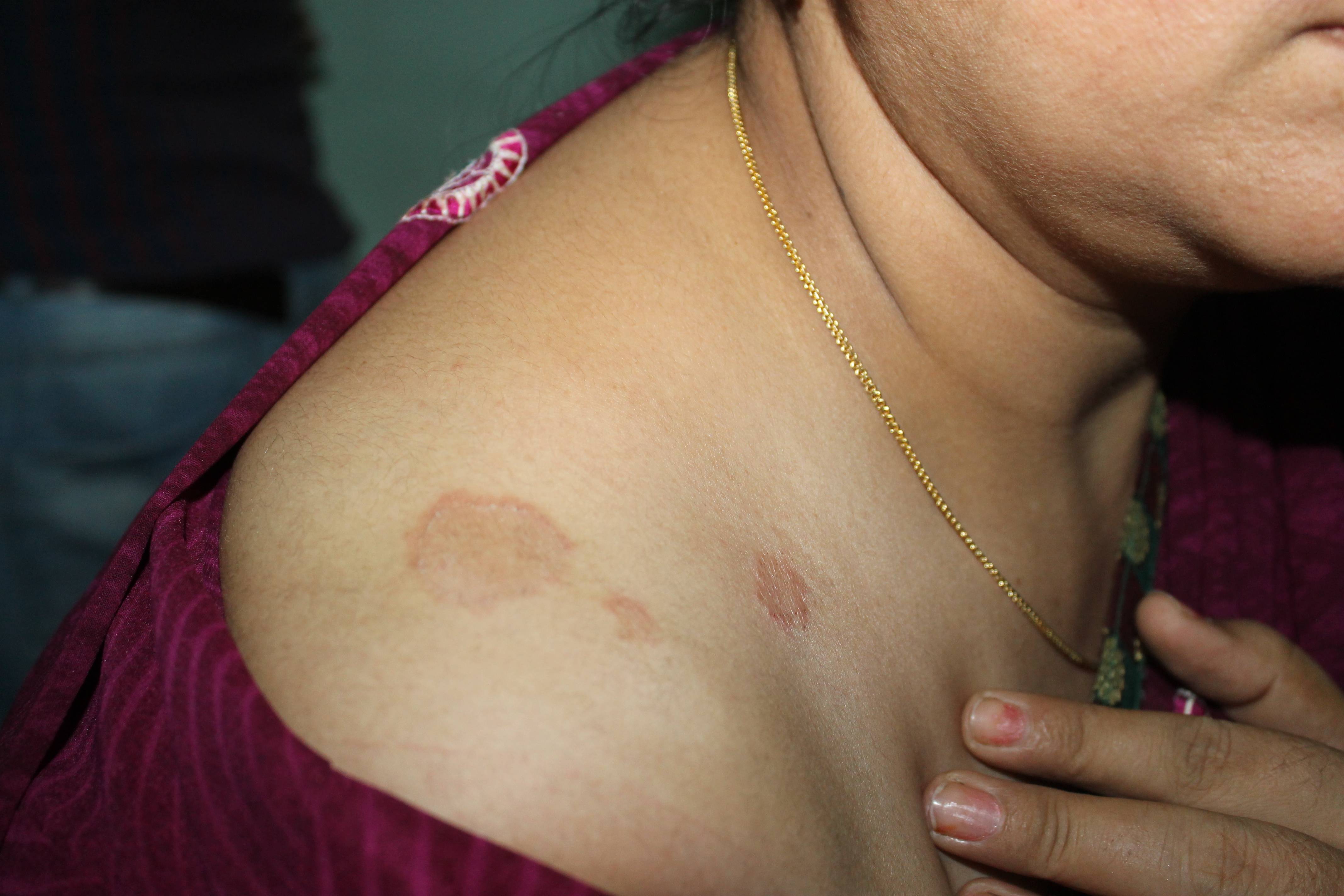 One day Childhood classmate of Dr.Ravi called him in despair that his wife is suffering from ringworm all over the body. He has tried various over the counter ointments with no effective results. Then he has been to a dermatologist, he has also prescribed her some antifungal medicines along with ointments. He was fearing that he or his children may catch the infection as it seems infectious. He has been assured that homeopathy will help her and advised to visit the clinic of Dr.Ravi at Balrampur. On 13/09/2014 at his Balrampur visit, he has seen Mrs. Rajeshwari and eruptions were red and angry looking. She has been assured that she will be treated without any side effects and that too without any ointment with a single piece of hair. As she was already fed up of applying ointments without effective results so she has consented to start treatment with Sahni effect. Her treatment process has been started