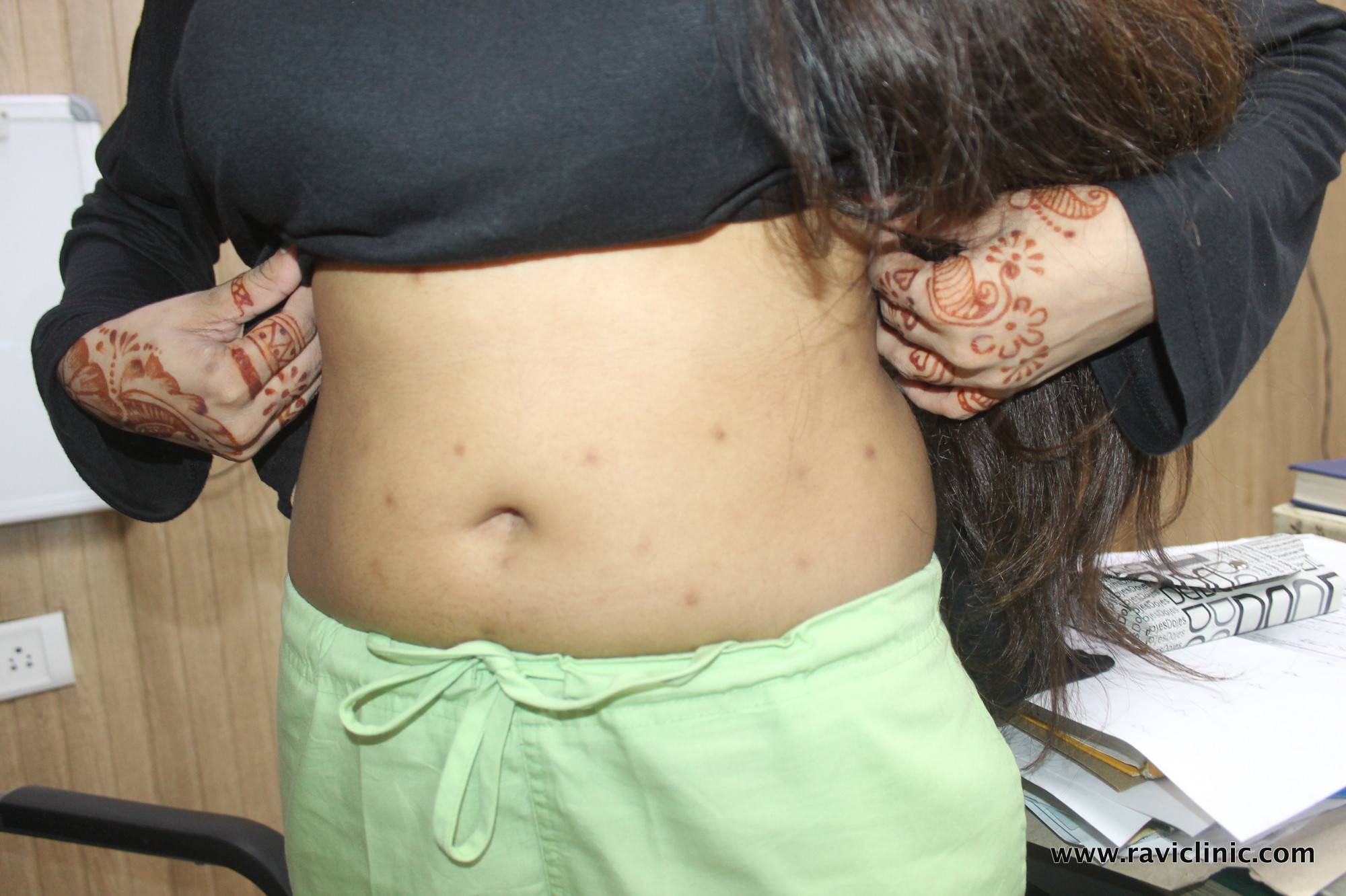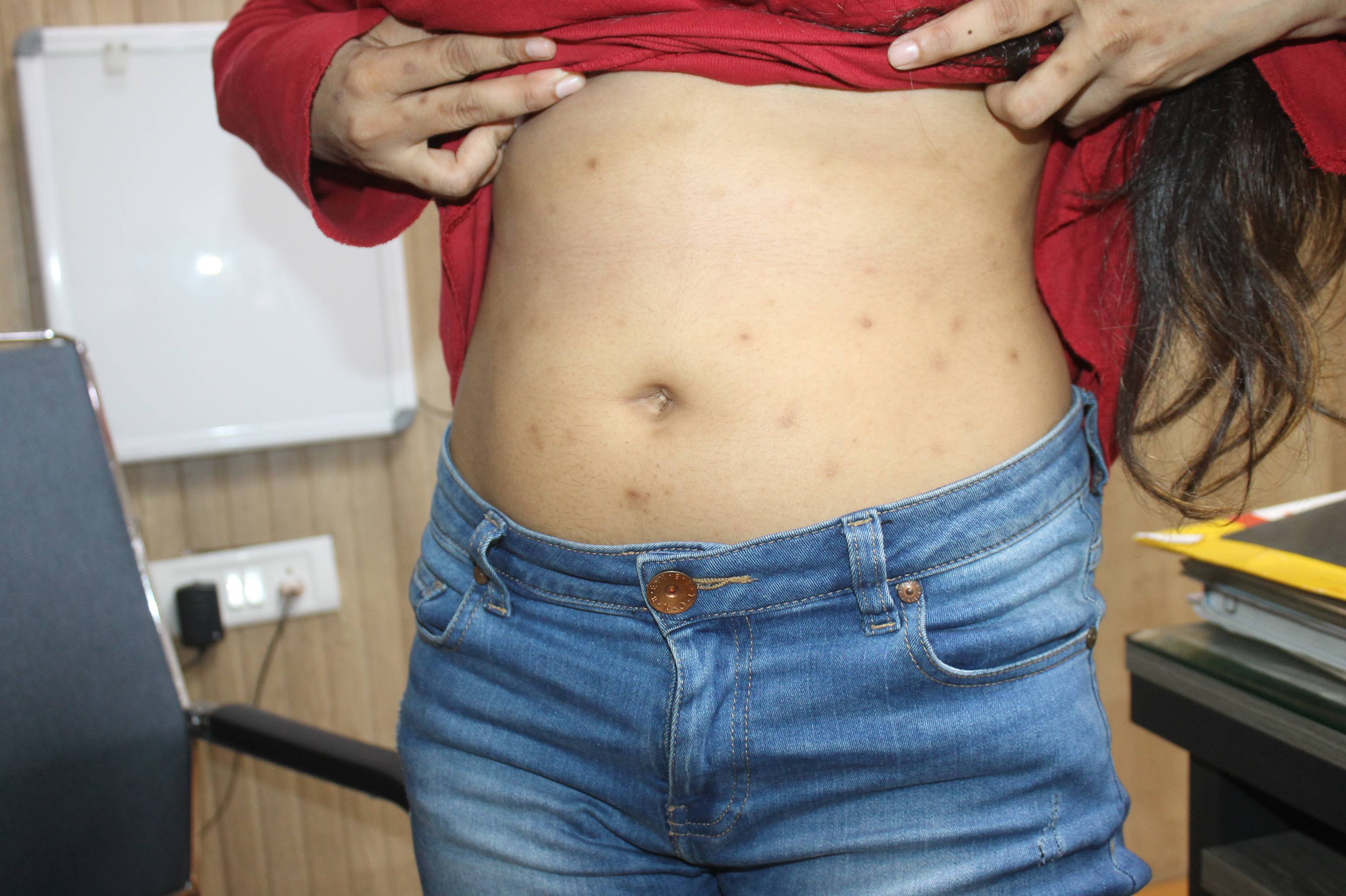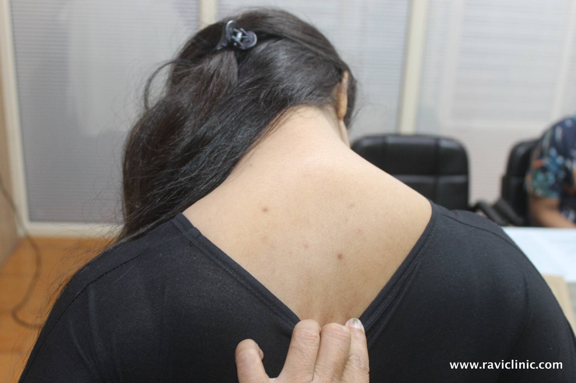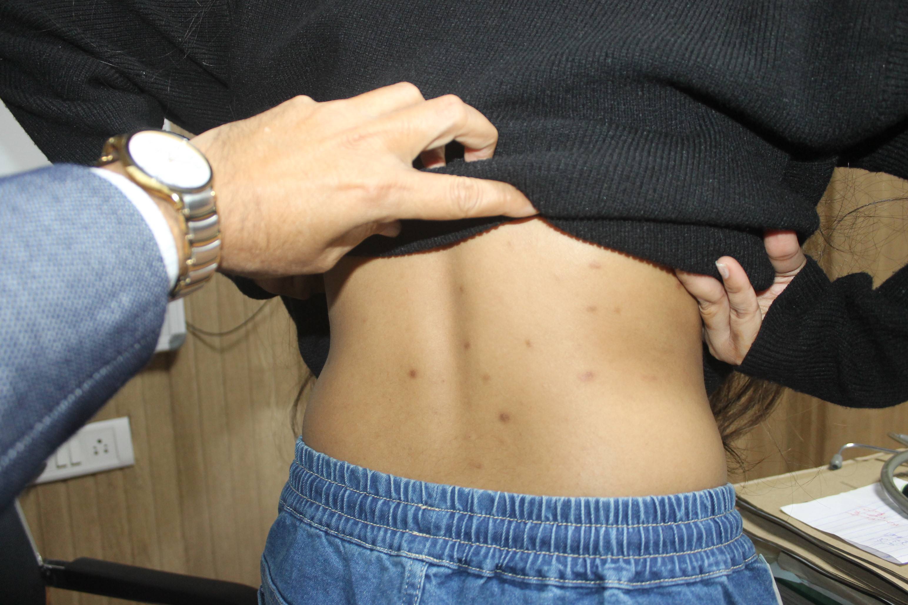 This young girl came from Gwalior to consult Dr. Ravi at his Lucknow clinic on 13th August 2018. She was suffering from a rare disease called Prurigo Nodularis. There was a formation of hard, itchy lumps (nodules) all over her body. She reported intense itching and there was a desire to scratch nodules until there is bleeding or pain. She was suffering from this disease since 5 years and from 2 years there is a rapid increase in nodules. She consulted many doctors but there was no improvement seen. She came to know about Dr. Ravi and his treatment process through his youtube channel. She came to consult him as soon as she got to know about him. She also reported urticaria. Dr. Ravi analyzed her case in totality and started his treatment process.