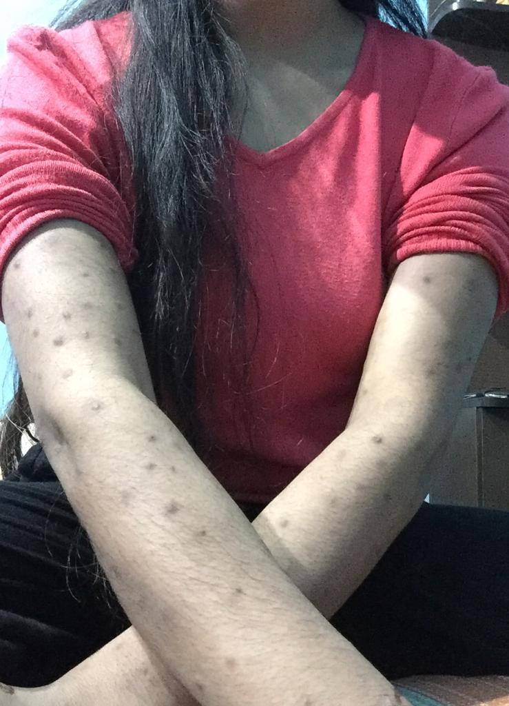 On 20th June she sent some photographs on Whatsapp to show her recovery. She reported no recurrence in prurigo nodules. Her prurigo nodules was completely cured. There were only spots left. She was happy and fully satisfied with Dr. Ravi treatment process. She is under treatment to avoid any recurrence and for complete cure.