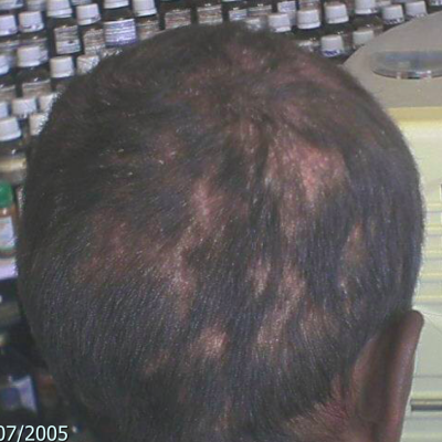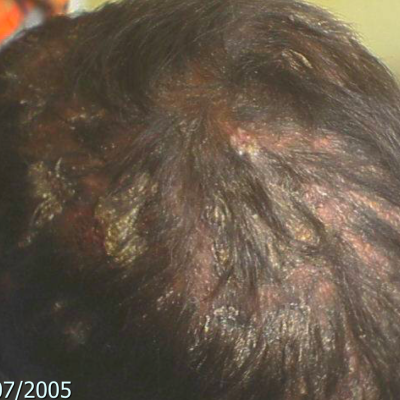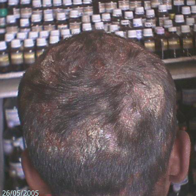 Now scalp condition on 31 July 2005 was much better, no eruptions, hair started growing back nicely
