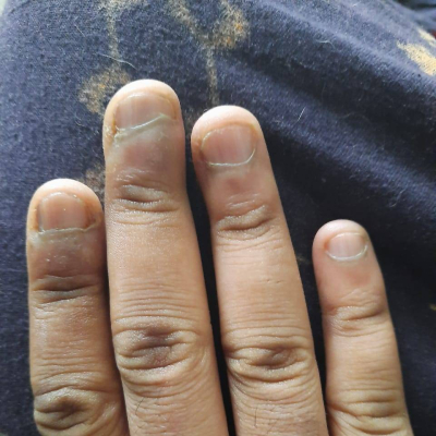 This young man has visited Dr.Ravi clinic from Delhi as he was facing the issue of periungual ugly warts for more than 3 years. Periungual warts are warts that cluster around the fingernail or toenail. They appear as thickened, fissured cauliflower-like skin around the nail plate. Periungual warts often cause loss of the cuticle and paronychia. Nail-biting increases susceptibility to these warts. Warts of this kind often cause damage to the nail either by lifting the nail from the skin or causing the nail to partially detach.