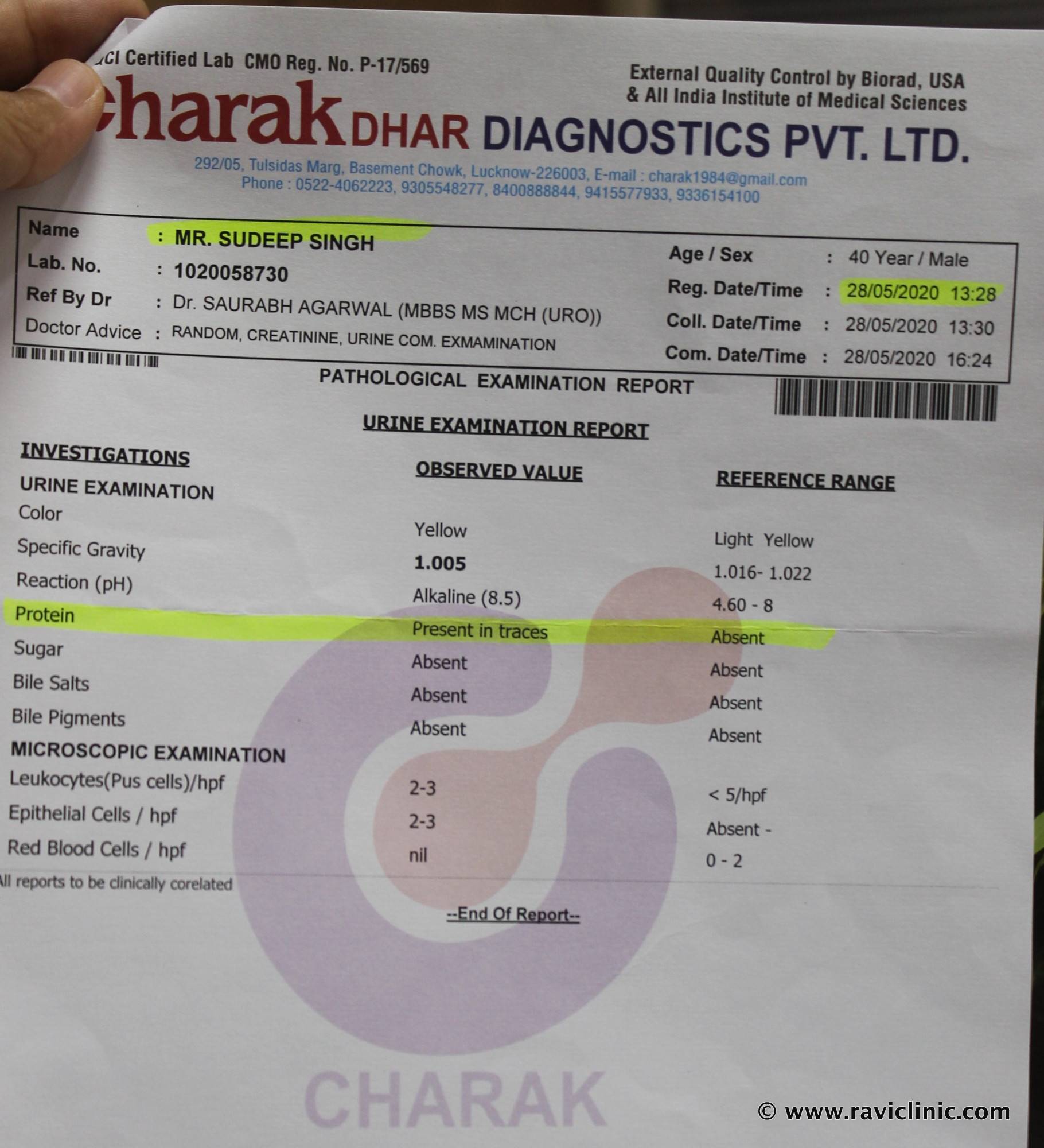 When his condition become worse in the lockdown condition of country, he visited an excellent Urologist, and he explained there is a fistula at the kidney and deposition of fat at the kidney. He suggested that treatment will be long-lasting, and there may be a frequent recurrence of the condition. Then he withdraws Hetrazan, and again urine becomes milky. Now the patient got worried that despite a strict diet, he is getting trouble. He was carrying a urine sample. Other patients at the clinic of similar diseases suggested that he may need minor or major surgery or Betadine instillation in the long run.