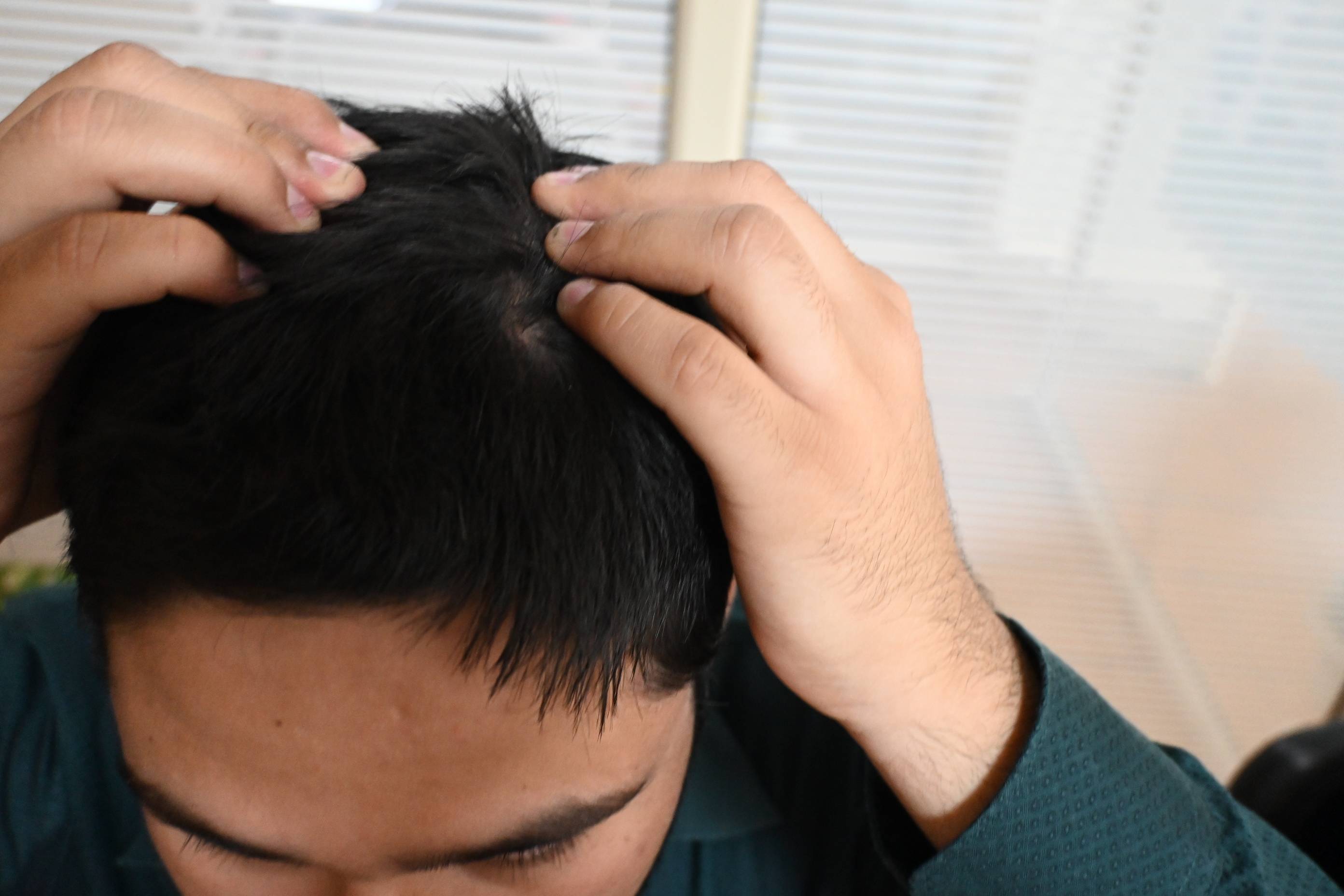 Te patient visited at the clinic. He is happy with the treatment outcome. Oil secretion stopped completely. Dandruff also gone, only sometimes he feels some dandruff at the vertex area. He further added that his years long trouble of Hyperhidrosis also got cured. Prior to the treatment he was unable to write in exams without difficulty. His text sheet becomes wet, pis pen slips while writing. He is grateful to the treatment