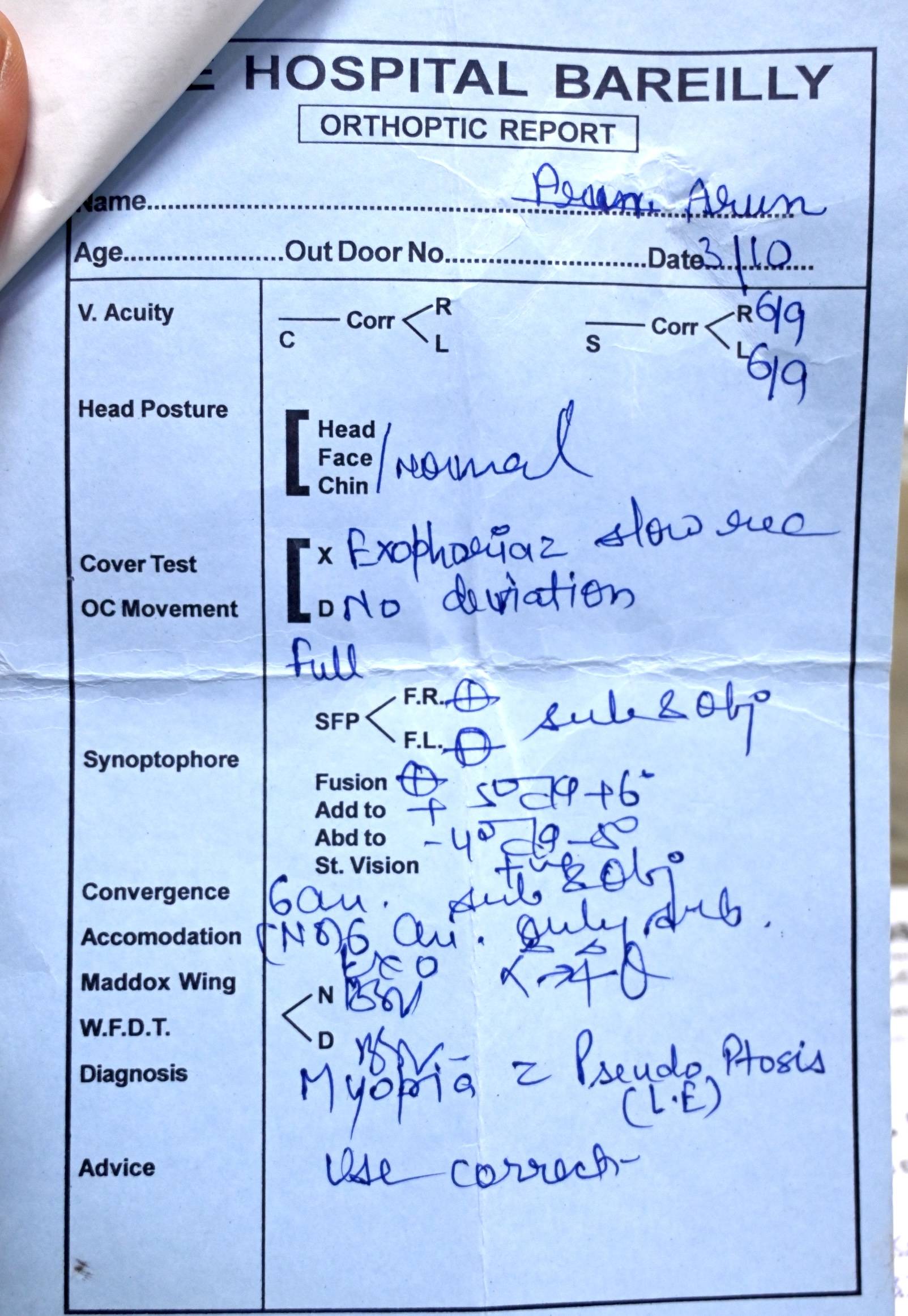 Arun's initial visit to a local eye center led to a misdiagnosis of Pseudoptosis, and the prescribed treatment had no noticeable effect. Determined to find a solution, he visited an Eye Surgeon in New Delhi, where he was accurately diagnosed with Essential Blepharospasm. Despite receiving multivitamin injections as recommended by a neurosurgeon, Arun's condition did not improve.