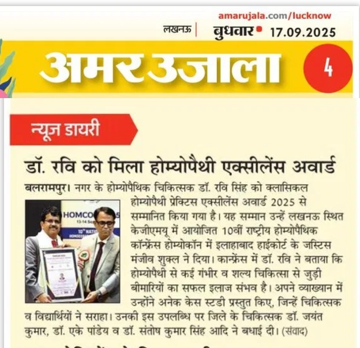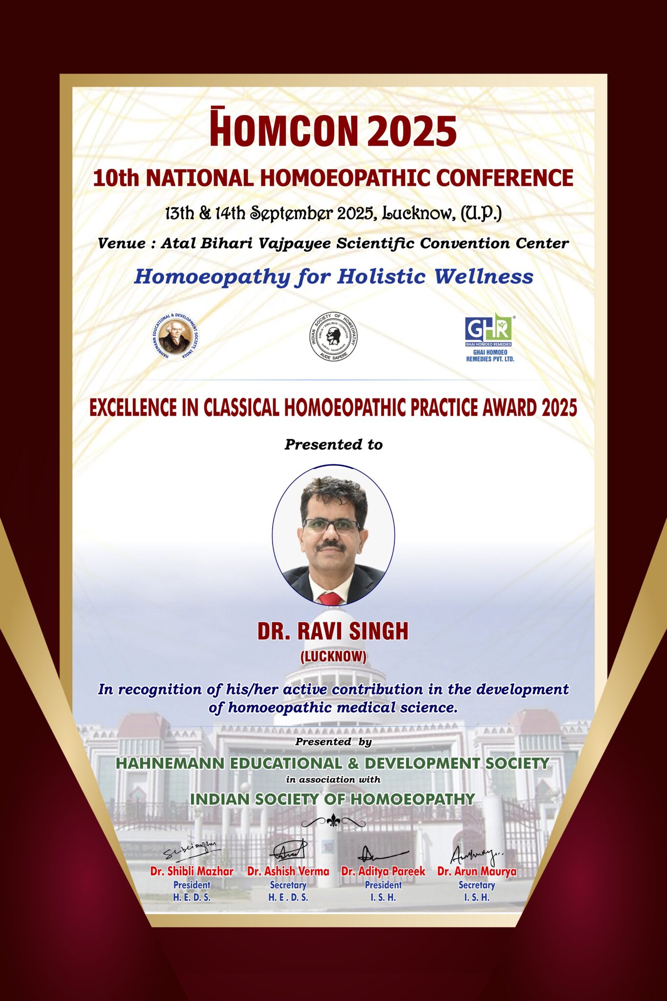 🏅 “Excellence in Classical Homeopathy Practice Award 2025”.