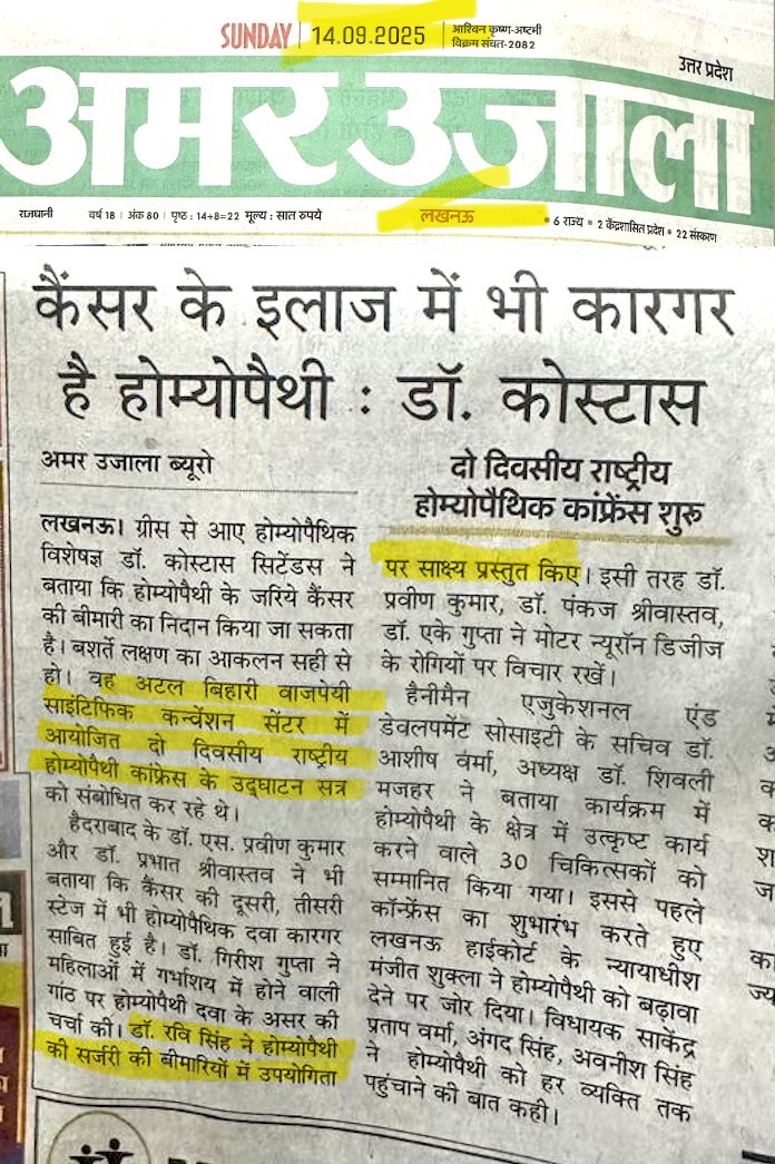 On September 13, 2025, the 10th National Homeopathic Conference – HOMCON 2025 was organized in Lucknow at the prestigious Atal Bihari Vajpayee Convention Center, King George Medical College.