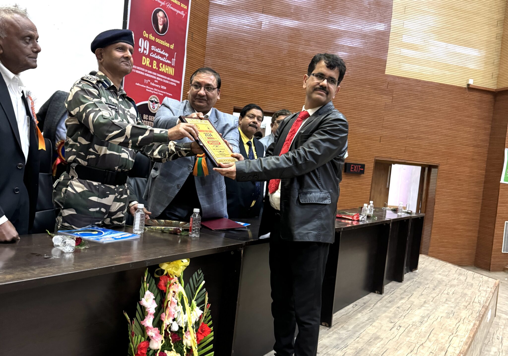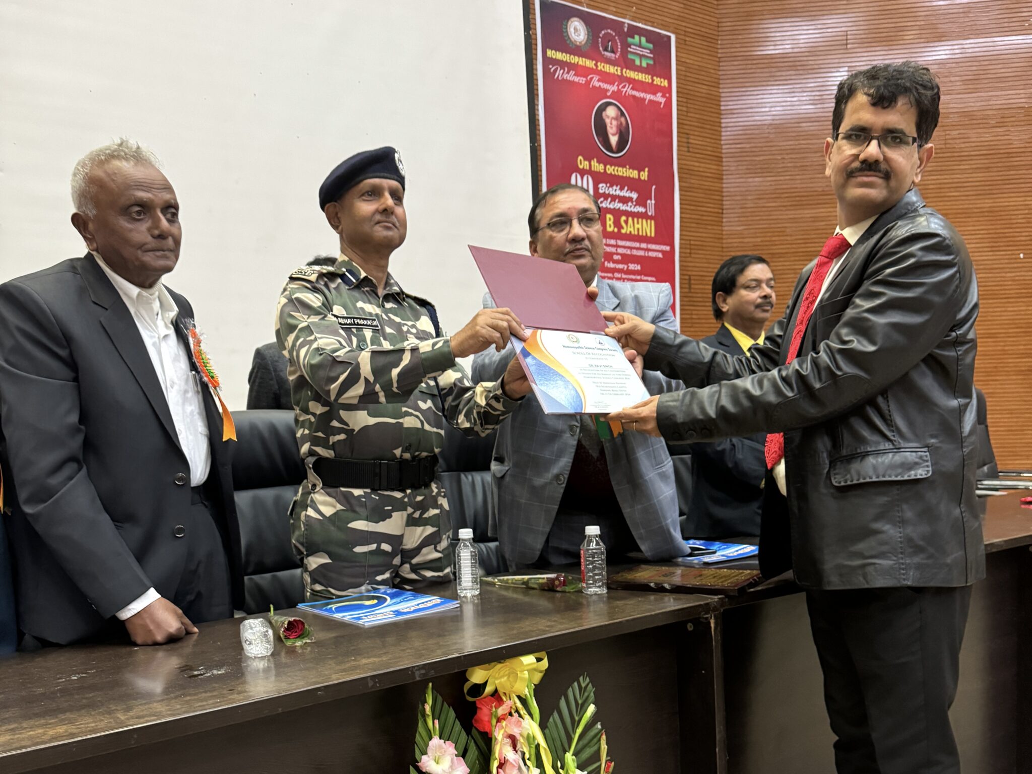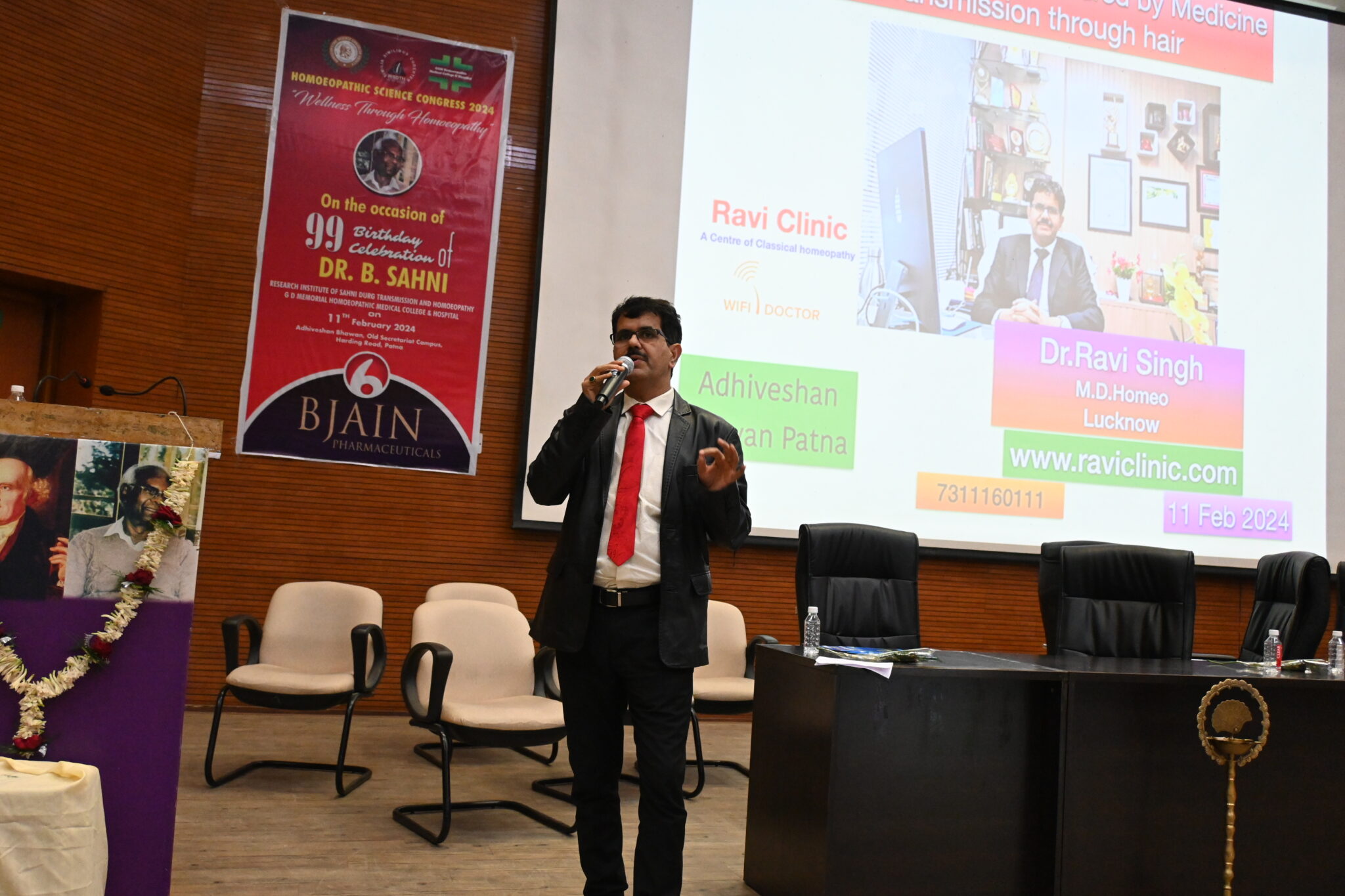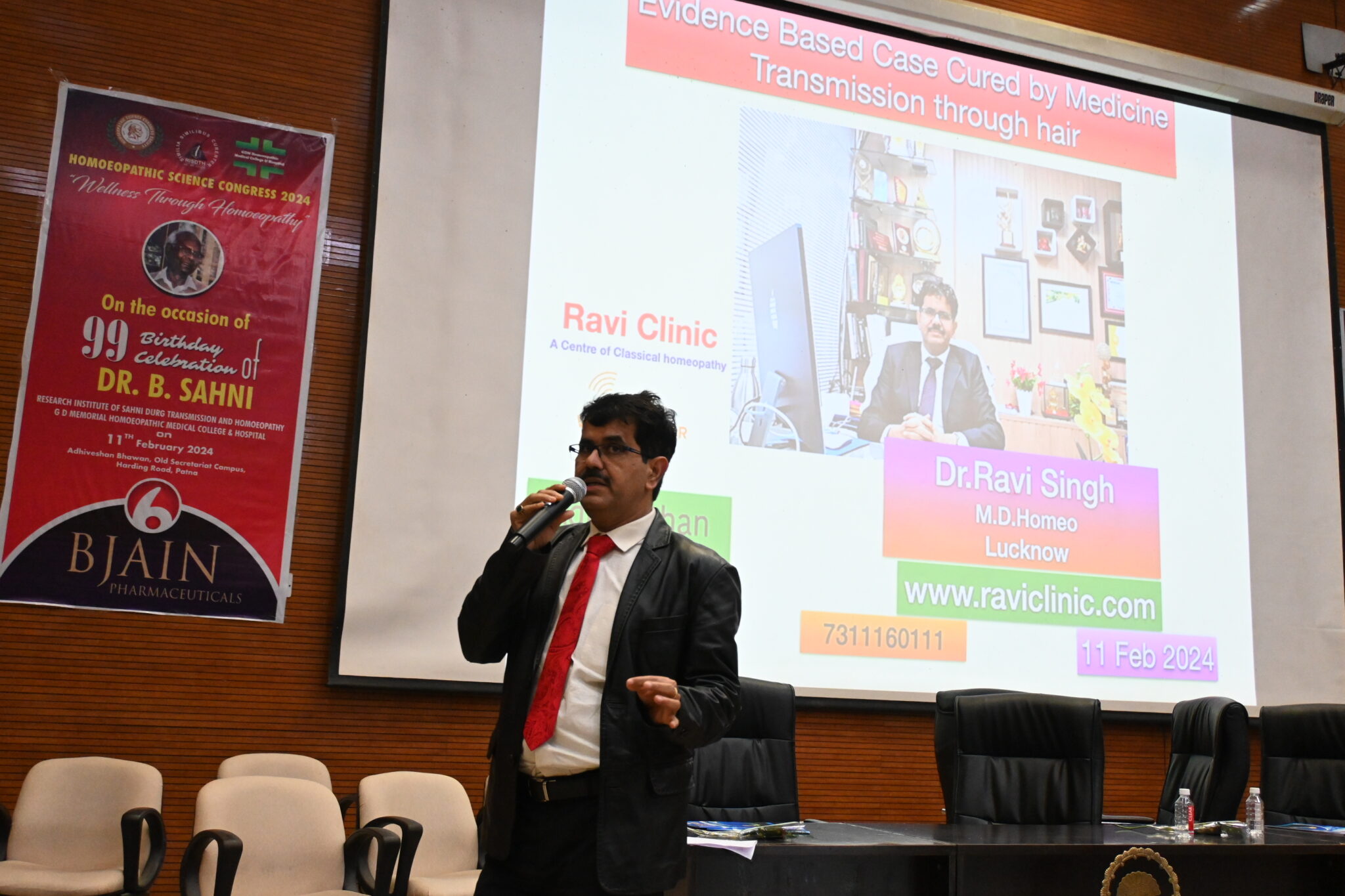>On the 99th birth anniversary of Dr. Bandhu Sahni, the pioneer of homeopathic medicine, the Homeopathic Science Congress was organized at the Convention Center in Patna. Homeopathic practitioners from across the country participated in this science congress. The city’s homeopathic doctor, Dr. Ravi Singh, was also invited to this seminar. Through his presentation, Dr. Ravi shared about numerous cases treated successfully through this method, reaching around 600 doctors at the seminar. Dr. Ravi explained that with this therapeutic method, homeopathic medicine can be transmitted through the patient’s hair without administering the medicine directly. He presented authentic cases of various ailments such as CSF rhinorrhea, chyluria, Hirschsprung’s disease, DVT, nephrotic syndrome, blepharospasm, mental illnesses, etc., which received significant appreciation. Prior to this, Dr. Singh has already presented research papers on this method both nationally and internationally. Dr. Ravi was honored at the seminar by Dr. Abhay Sharma, the Director-General of Medicine at SSB
